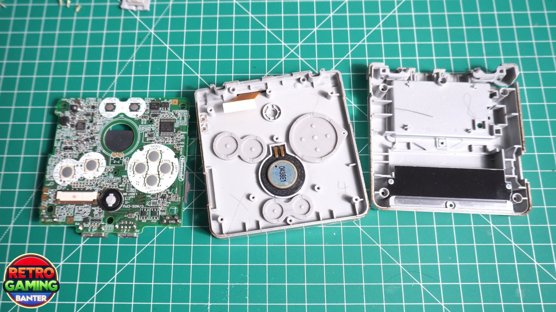 First I start with unscrewing the battery compartment screw and remove the original battery. It still works after all these years but definitely has a shorter battery life. There’s six security screws holding the case together which requires the included screwdriver to be used. And it’s open. There’s a fair bit of grime on the shell but the board itself looks to be in great condition.